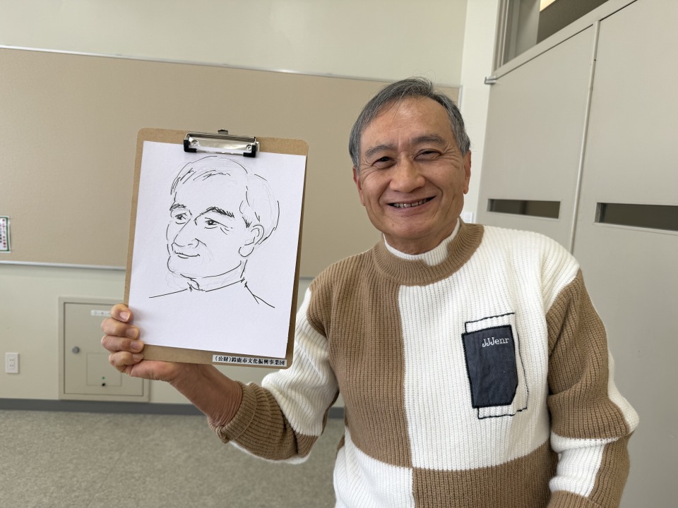 山﨑先生をモデルにさらさらと特徴を捉えて描く様子に受講生のみなさんからは人物画に挑戦してみようといった意欲的な声が聞こえました。